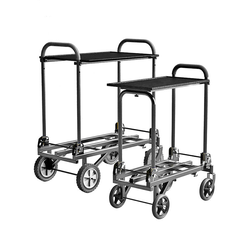The carts are fully foldable providing for a small foot print to easily fit in the trunk of the vehicle along with minimal storage space requirements.