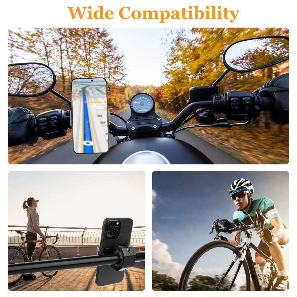 Wide Compatibility: Suitable for handlebars with a diameter of 18mm to 38mm, and supports phones with a width of 40mm to 90mm, making it compatible with most bicycles and motorcycles.
