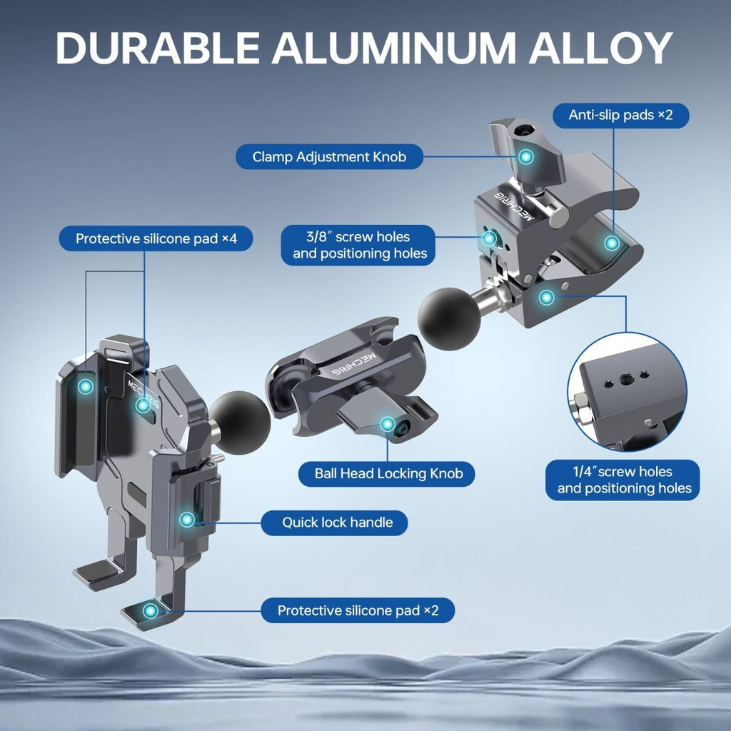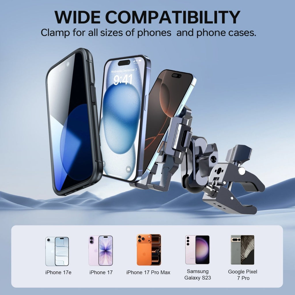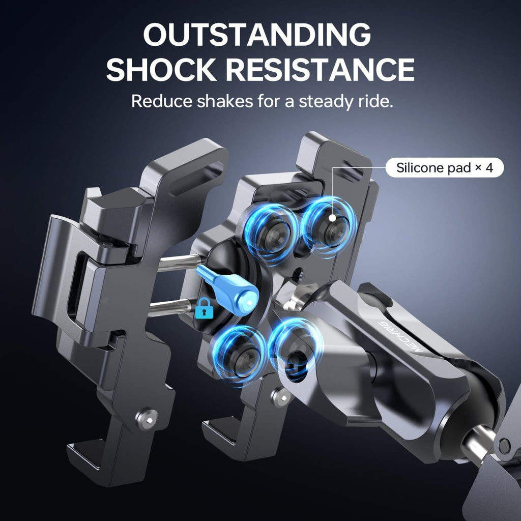 Shock-Absorbing Structure: Engineered with anti-vibration features to keep your phone stable and safe on rough roads.