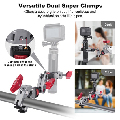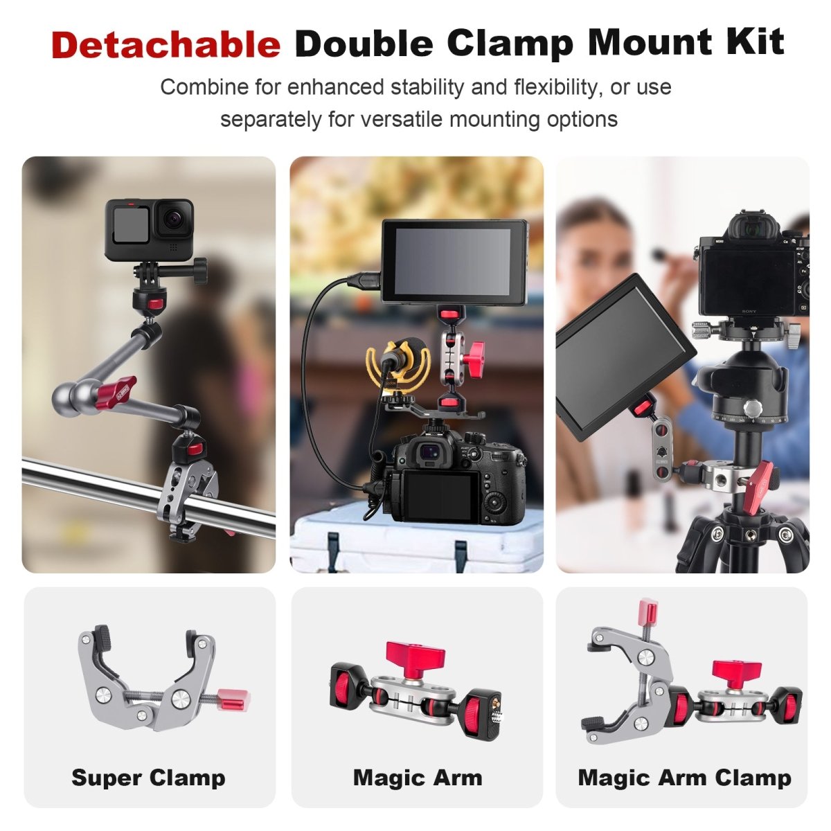 Detachable Magic Arm & Clamp: Combines detachable super clamp, magic arm, and magic arm clamp for flexible setups. Enhances stability and multi-angle adjustments.
