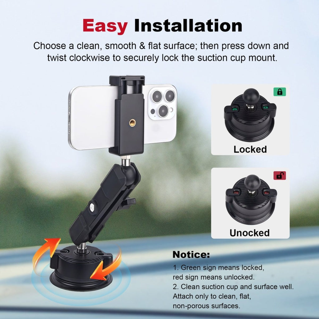 Heavy-Duty Suction Cup: Strong vacuum grip for secure mounting on smooth surfaces such as glass, metal, or tiles.